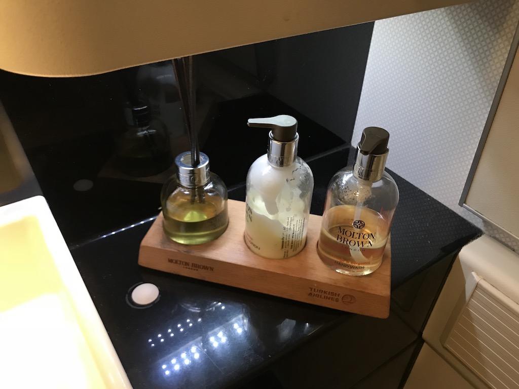 Die für die Business Class vorgesehenen Waschräume waren in einem sehr sauberen Zustand, hier standen wieder Seife und Handlotion der Marke Molton Brown bereit.