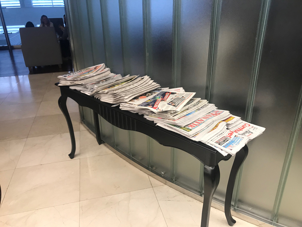 Direkt neben dem Eingang der Lounge befindet sich ein abgegrenzter Raum mit Computerarbeitsplätzen sowie ein Zeitungstisch mit diversen türkischen und internationalen Zeitungen.