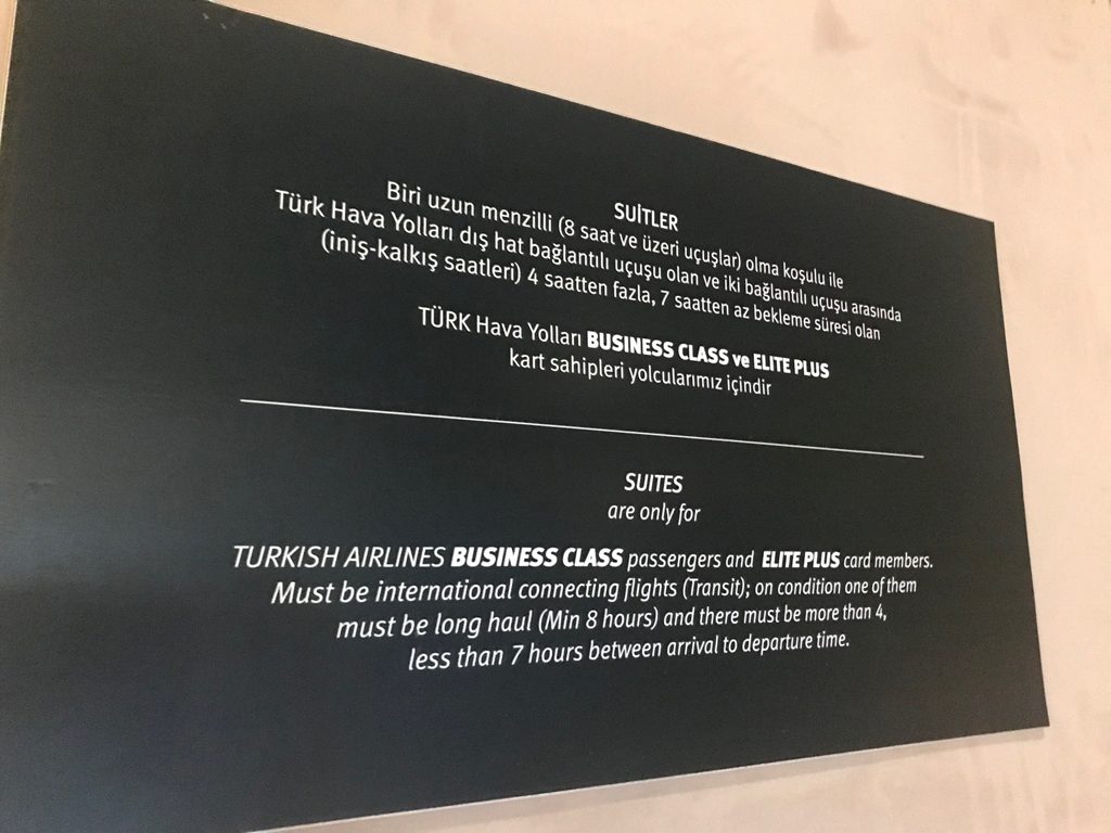Der Zugang in den sogenannten „Suite-Bereich“, in dem es Duschen und Betten gibt, steht seit kurzem nur noch exklusiv Langstreckenreisende der Business Class sowie Turkish Airlines Miles&Smiles Elite Plus-Statuskunden zur Verfügung.