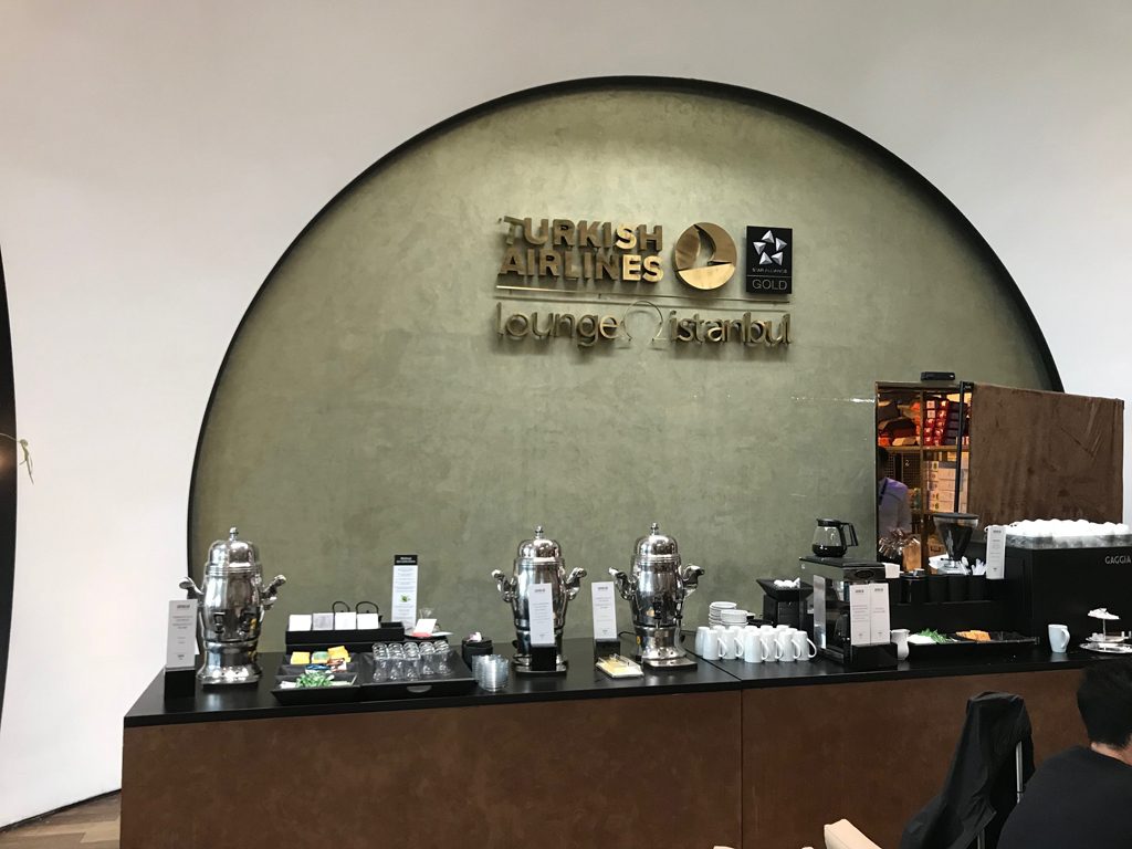Passend zu der vielfältigen, schmackhaften und gastfreundlichen Küche ihres Heimatlandes bietet Turkish Airlines in der Lounge zahlreiche Catering-Stationen an, an denen Gäste zwischen vielen Speisen und Getränken auswählen können. Grundsätzlich gibt es mehrere „Getränkebereiche“ mit kalten und warmen Getränken in Selbstbedienung.