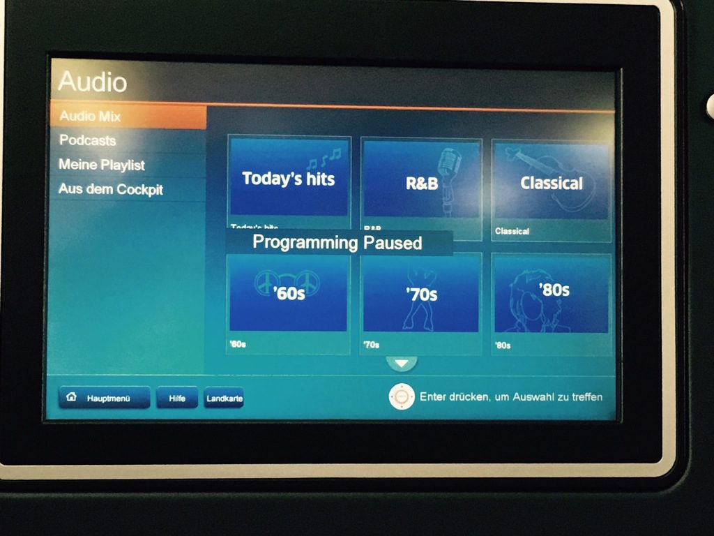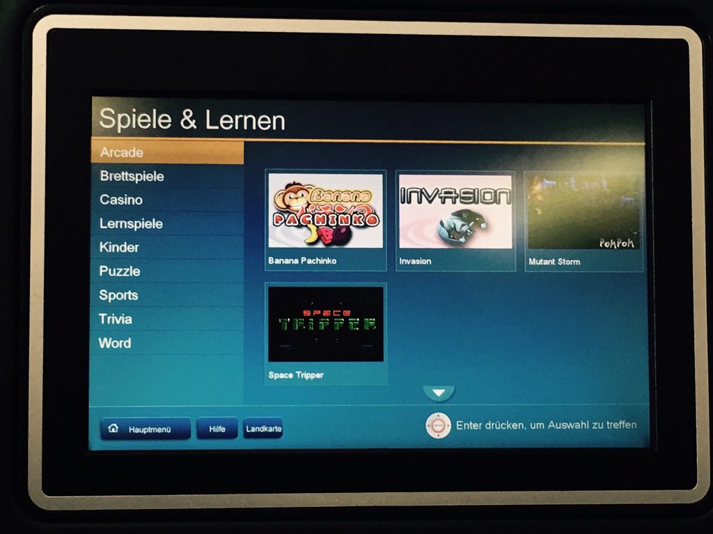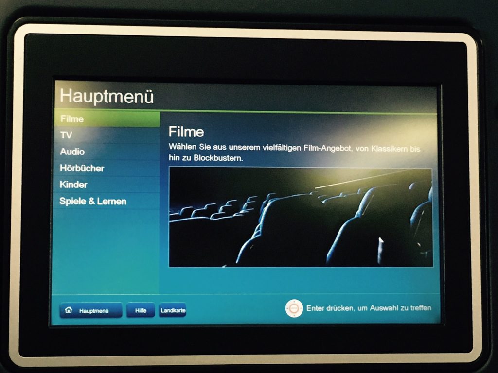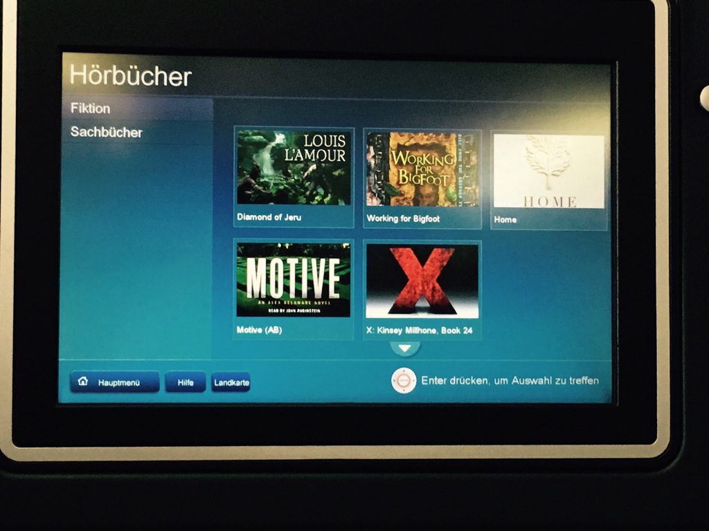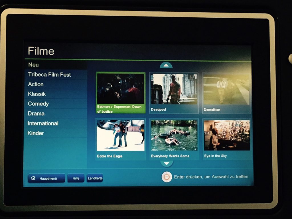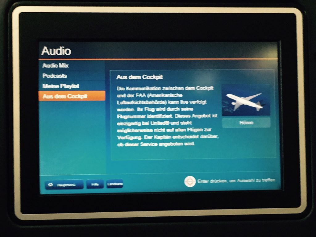 Während dem Steigflug habe ich mich ein wenig durch das In Flight Entertainment (IFE) geschaltet. United hat in allen Klassen eine recht gute Auswahl an Filmen, TV Serien, Musik, Hörbüchern und Spielen.