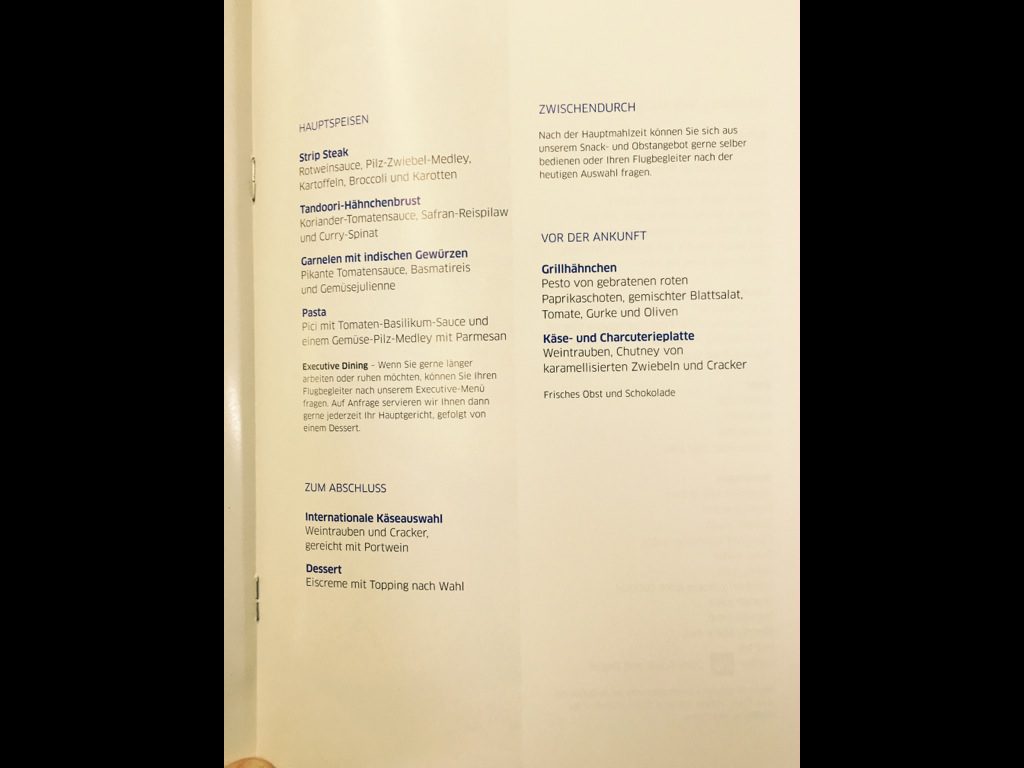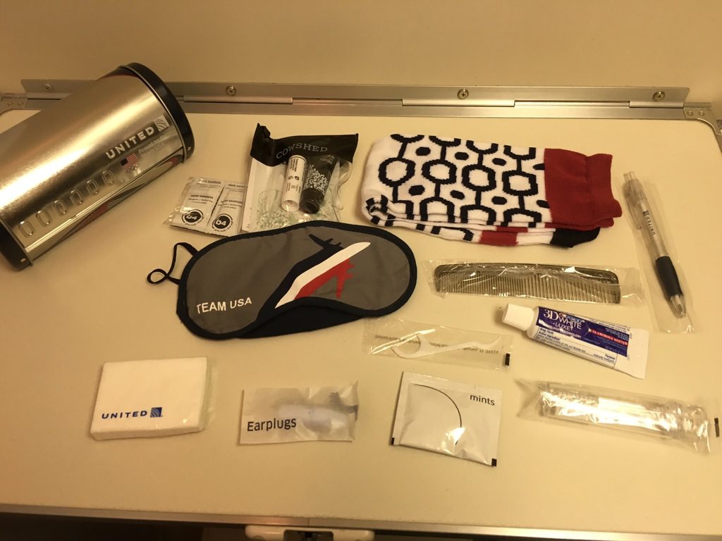 Mit einem Wagen wurden noch Tageszeitungen am Sitz verteilt, sowie anschließend Amenity Kits. Das Amenity Kit war sehr vollständig ausgestattet, auch wenn der Inhalt keine Markenprodukte waren.