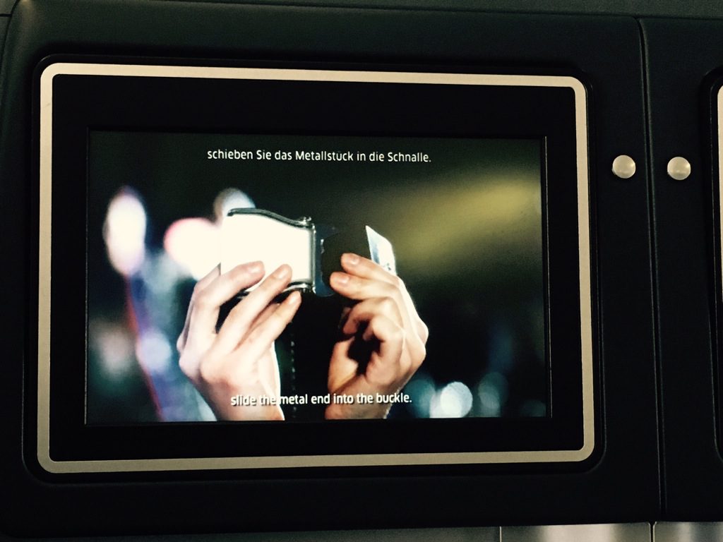 Nachdem das Einstiegen beendet war, sind wir sehr pünktlich zur Startbahn gerollt. Hier wurde das Sicherheitsvideo gezeigt. Interessanterweise gibt es auch parallel zum Sicherheitsvideo eine manuelle Sicherheitsvorführung von den Flugbegleitern auf internationalen Flügen von United Airlines.
