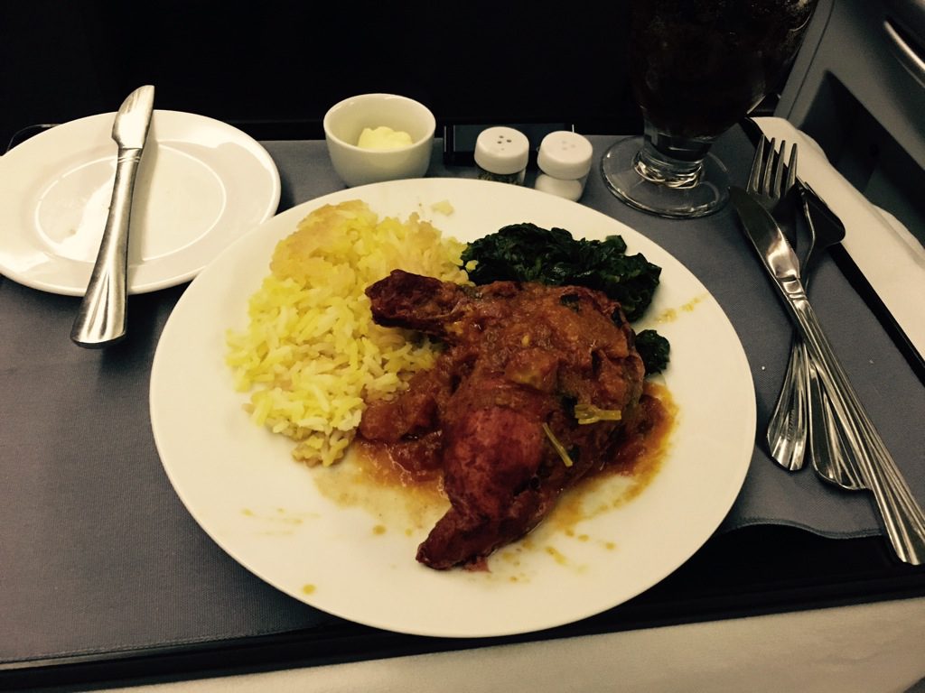 Als Hauptgang hatte ich das Hühnchen bestellt. United richtet das Hauptgericht in der Galley auf Tellern an. Dennoch fand ich die Präsentation nicht wirklich gelungen. Allerdings schmeckte das Hauptgericht gut. Meine Cola Light wurde regelmäßig während des Essensservice aufgefüllt.
