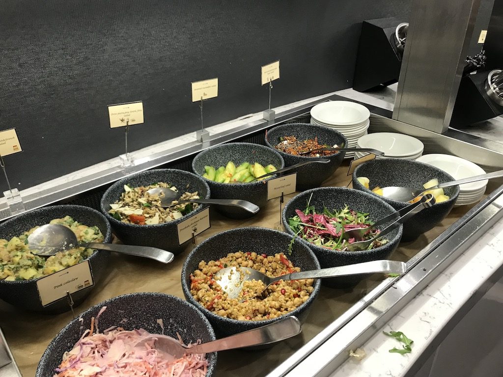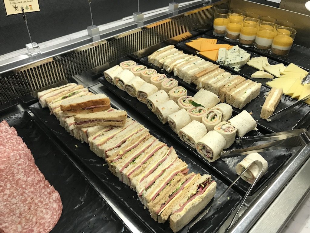 Besonders positiv überrascht war ich von der Speisenauswahl am großen Buffet der Lounge. Hier wurden viele verschiedene warme und kalte Gerichte angeboten. Auch das Angebot von Heiß- und Kaltgetränken war sehr gut.