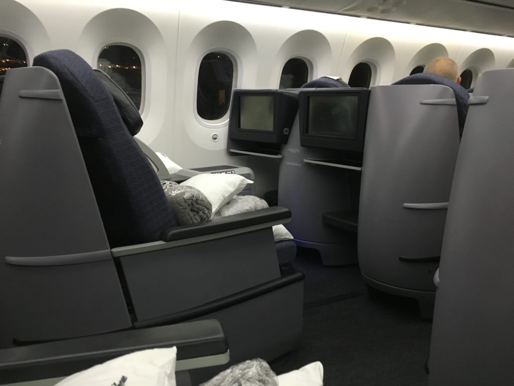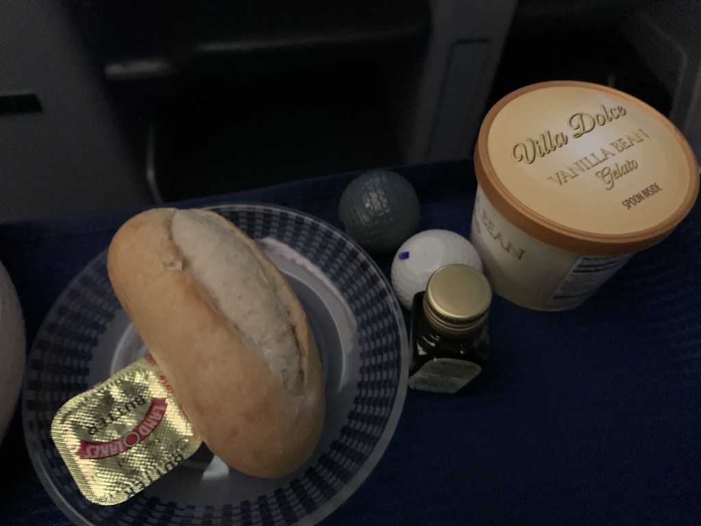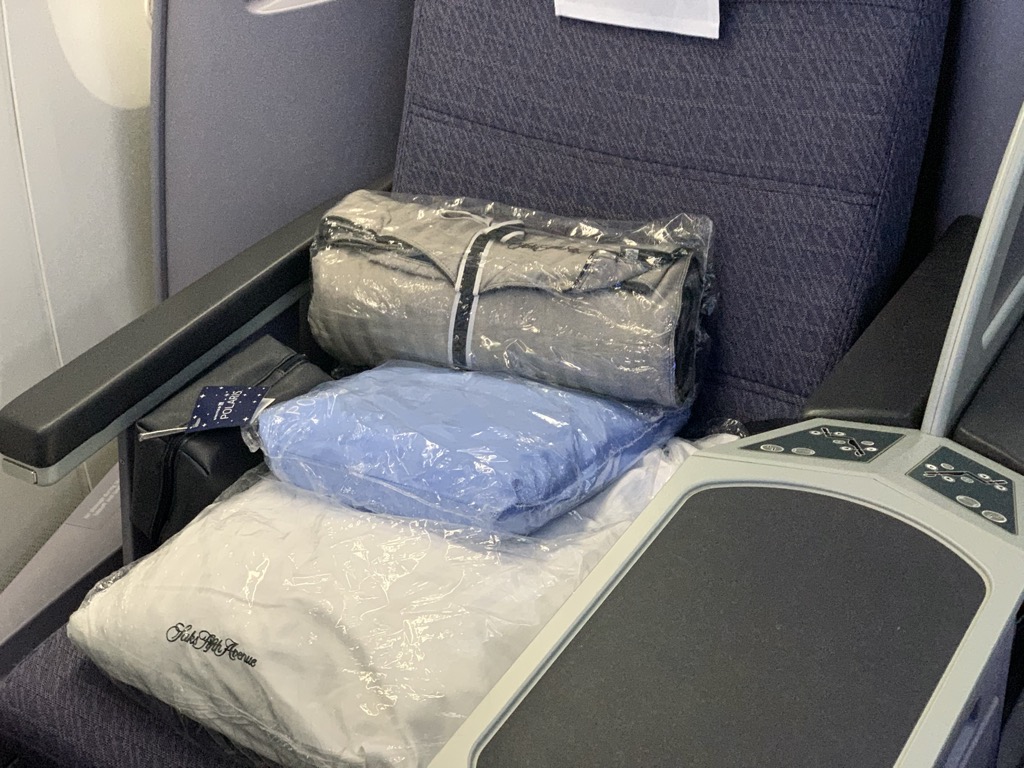 Der größte Unterschied zu früheren Flügen war, dass alle Kissen und Decken auf den Sitzen einzeln in Folie eingezogen waren. United Airlines hat in der Business Class wirklich hervorragende Kissen und Decken und vor allem pro Gast mehrere, was leider zu Unmengen an Müll führt, der aber von den Flugbegleitern sehr schnell eingesammelt wurde.