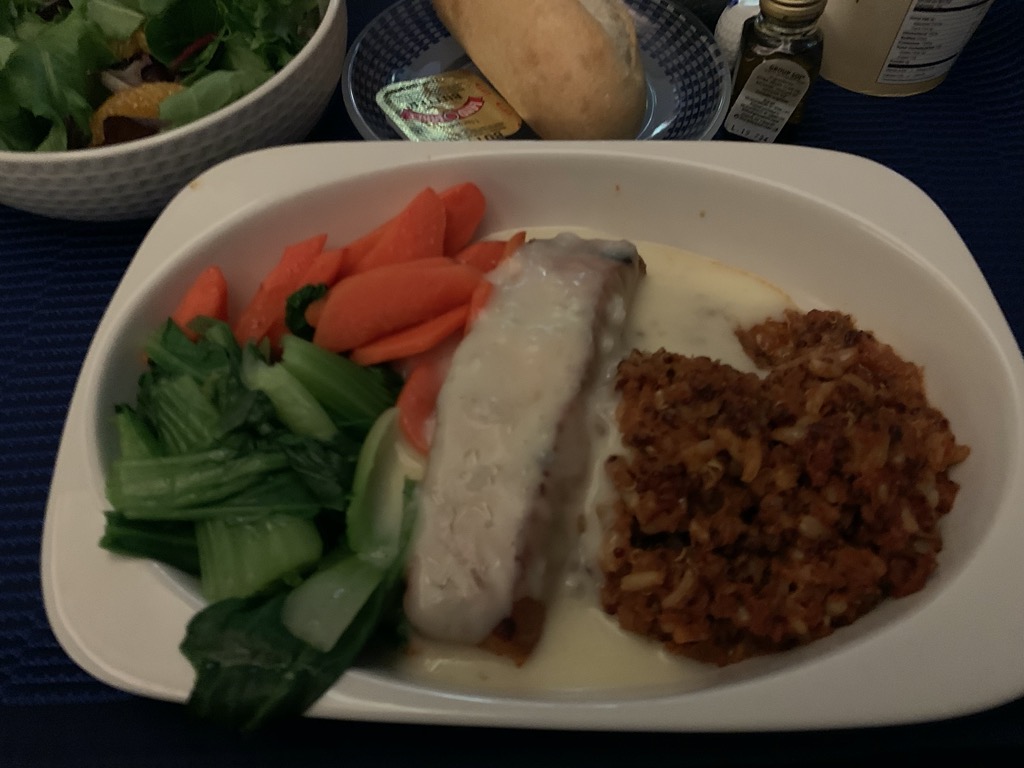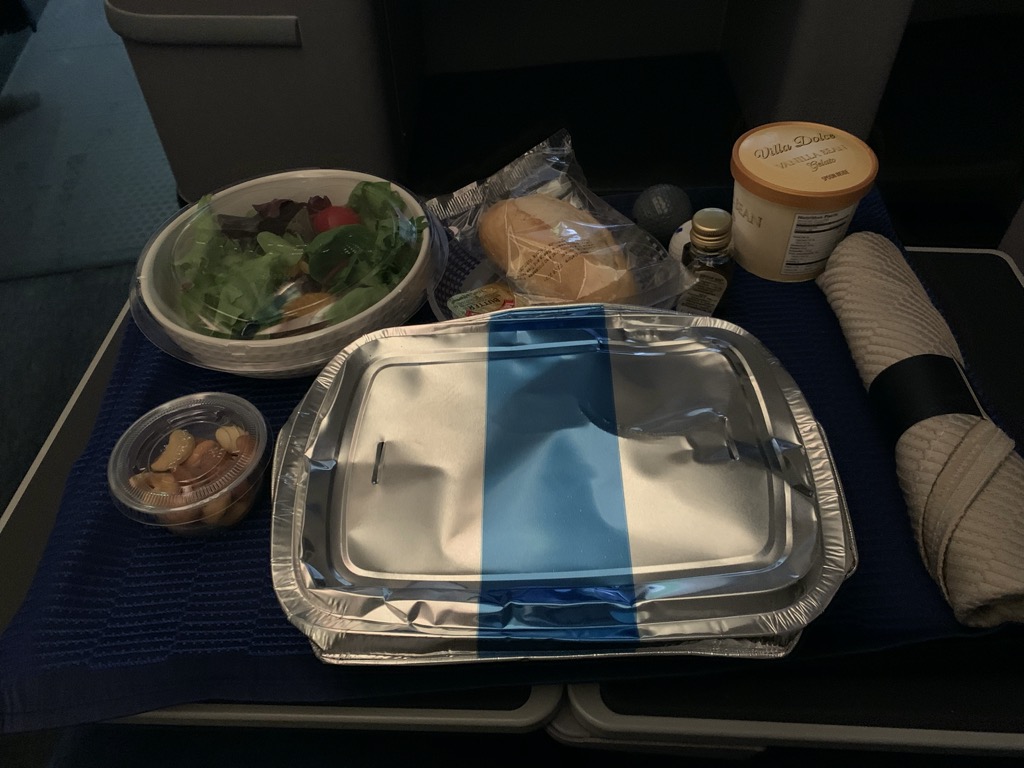 Wirklich begeistert hat ich das Essen nicht, wobei der Hauptgang absolut in Ordnung war. Mit einem Business Class Essen, wie man es aber vor Corona noch kannte, hatte es aber leider nicht viel zu tun.