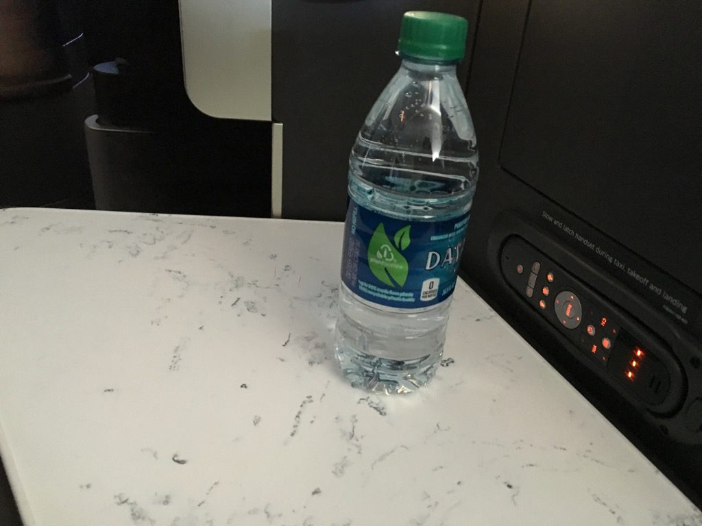Nach dem sehr zügigen Essenservice wurden noch 0,5 Liter Flaschen Wasser verteilt und ich habe mich in das Land der Träume verabschiedet. Der Sitz ist dabei ausgesprochen bequem und auch für einen Business Class Sitz überraschend breit. Ich kenne wenige Sitze, welche einen derartig hohen Schlafkompfort haben!