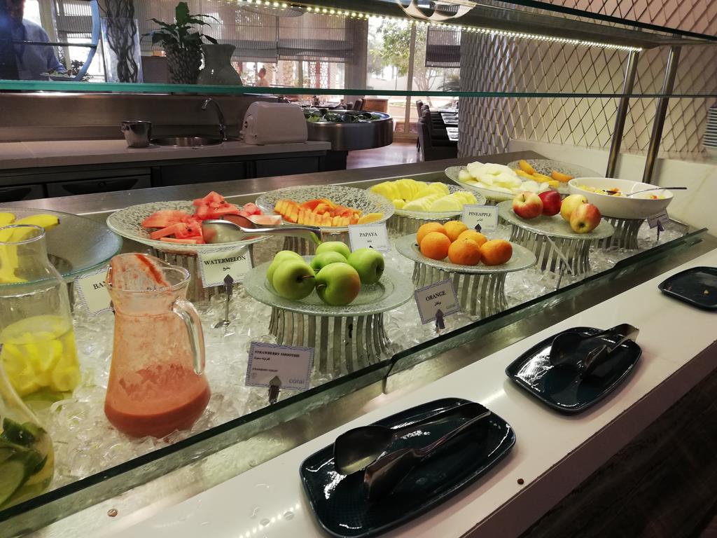 Morgens haben wir den Tag im Coral Restaurant gestartet. Hier haben wir auf der Terrasse gefrühstückt. Die Auswahl an Speisen und Getränken war klasse. Neben einem interkontinentalen Frühstück gab es auch arabische und indische Gerichte. Eierspeisen wurden frisch zubereitet und am Platz serviert. Das Obst und die Säfte waren frisch.