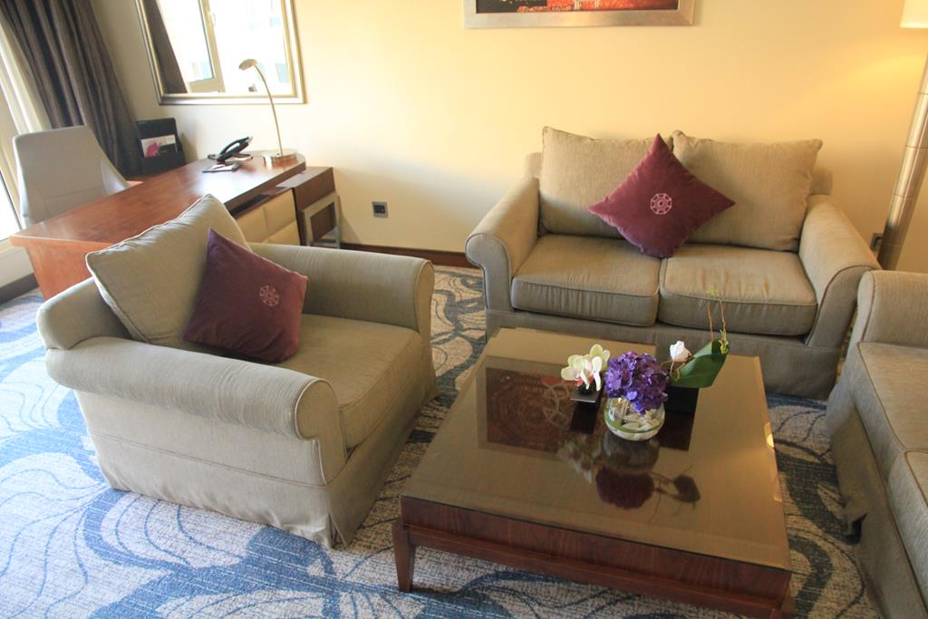 Die Clublounge wurde erst kürzlich renoviert. Alles ist neu und sehr geschmackvoll eingerichtet. Auf der rechten Seite befinden sich diverse Sitzmöglichkeiten. Hier kann man es sich gemütlich machen. Abends habe ich hier ein wenig gearbeitet. Ein Business Center gibt es natürlich auch.
