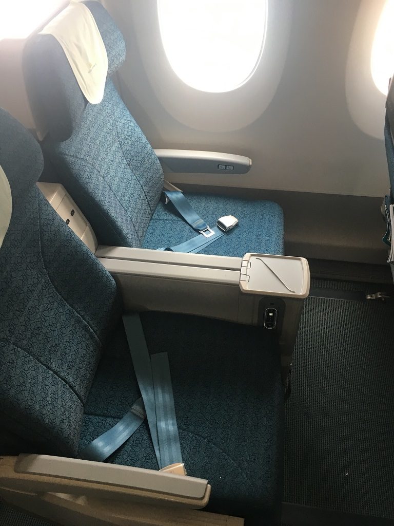 Der Sitz entspricht dem, was man vielfach auf internationalen Langstrecken geboten bekommt, aber mit vergleichsweise viel Sitzabstand. Immerhin 81 cm und damit etwas mehr, als Lufthansa bietet.