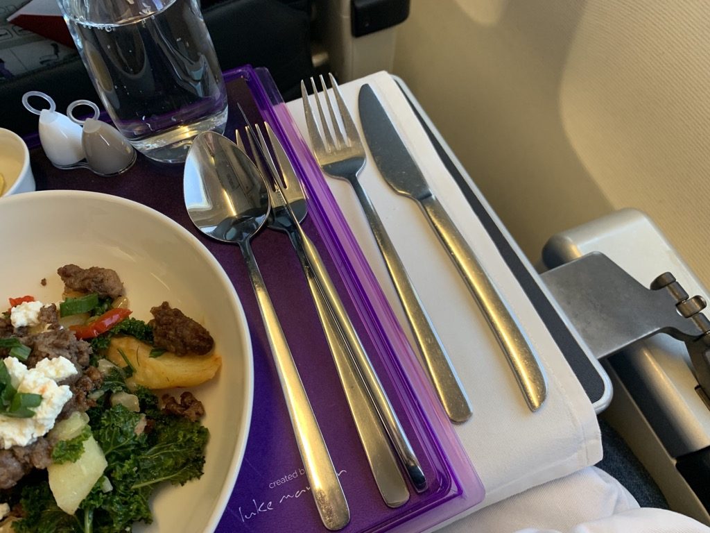 Anschließend hat man die Essensbestellungen für das Frühstück aufgenommen. Hier gab es neben einem „Virgin Müsli“, welches im Wesentlichen ein großes Bircher Müsli ist auch eine warme „hearty Breakfast“ Option angeboten, also ein warmes herzhaftes Gericht.