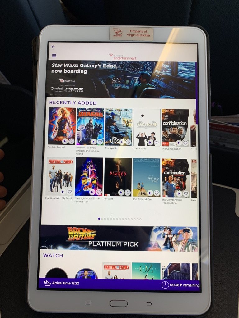 Economy Class Passagiere können hierbei auf dem eigenem Endgerät das System kostenlos nutzen und für Business Class Passagiere bietet Virgin Australia kleine Samsung Tablets an.