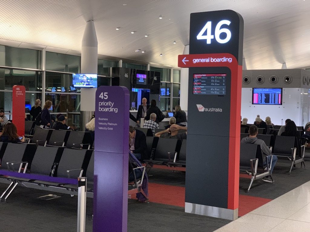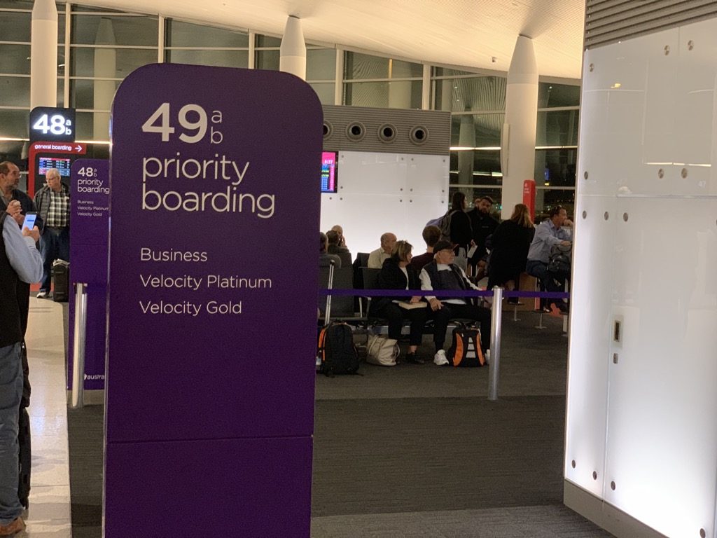Das Boarding bei Virgin Australia war extrem gut organisiert. So gibt es feste Aussteller an jedem Gate, welche schon vor Beginn des Boardings darauf hinweisen, welches die Schlange für das Priority Boarding von Business Class und Gold, sowie Platinum Karteninhaber des Vielfliegerprogramms von Virgin Australia und ihrer Partner wie z.B. Etihad Airways, Delta und Singapore Airlines ist.