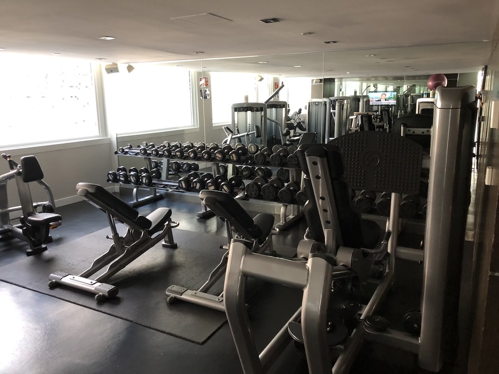 Cardiogeräte erlauben einen guten Blick auf den Lake, diese Maschinen sind mit Plexiglas abgetrennt. Ein anderer Bereich ist mit Geräten zum Krafttraining ausgestattet. Dort findet man auch einen Waschraum, Desinfektionstücher lagen überall aus.