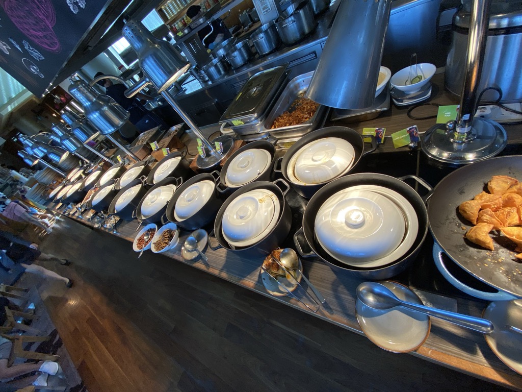 Das Frühstück im Hotel war umfangreich. Es gab viele warme Speisen, Brötchen, süße Teilchen, Obst, Aufschnitt, Joghurt, Säfte und Aufstriche. Neben dem Buffetbereich gibt es noch eine Suppenstation.