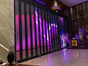 Unsere Zimmer, oder besser gesagt die Ecksuite, befand sich auf dem höchsten Stockwerk. Von hier hatte man einen tollen Blick in Richtung Marina. Direkt nach dem Betreten befand sich auf der linken Seite ein Gäste-WC. Der kleine Flur mündete in ein großzügiges Wohnzimmer. Hier war das zentrale Element eine halbrunde Ledercouch. Optisch auf jeden Fall ein Hingucker, auch wenn das nicht direkt unser Einrichtungsstil wäre.