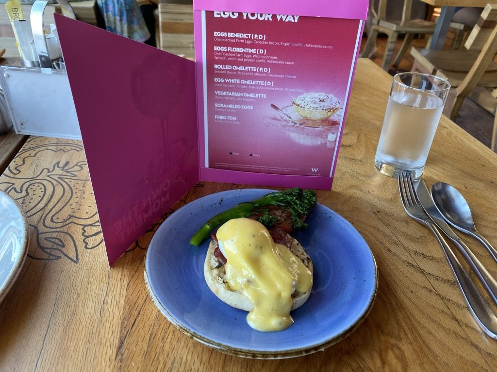 Christoph hält bei einigen Hotelprogrammen Status, so auch bei Marriott Bonvoy. Durch seinen Platinum Status erhielten wir kostenloses Internet und Frühstück, sowie eine Einladung zur Happy Hour. Leider verfügt das Hotel über keine Lounge, die Happy Hour war aber eine angenehme Ergänzung. Hier wurden neben dem Frühstücksrestaurant Cocktails und Softdrinks angeboten.