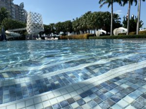 Auf dem selben Geschoss befindet sich auch der großzügige Pool, welcher mit ausreichend Liegen und Schirmen ausgestattet ist. Besonders hervorzuheben ist für uns hier der Wasserspender. Den kompletten Tag über stand hier kostenfreies gekühltes Wasser zur Verfügung.