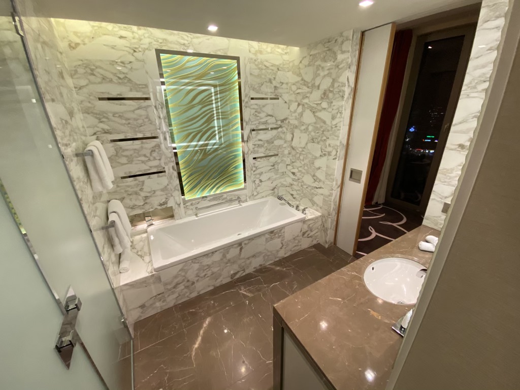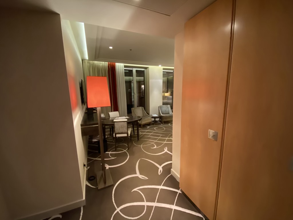 Am Abend unseres Anreisetages, kamen wir gegen 20 Uhr in der Lobby an und wurden freundlich begrüßt. Schnell waren alle Formalitäten erledigt. Als HiltonHonors Diamond Member bekommt man in der Regel ein Upgrade, sofern es die Verfügbarkeit zulässt. In einem Nebensatz erfuhren wir sehr schnell, dass die Auslastung des Hotels aufgrund der Absage bei nur etwa 35% lag. Entsprechend wurde uns ein Upgrade auf eine Suite zugewiesen, allerdings leider ohne View. Eine für uns wirklich eigenartige Upgradepolitik, dass man den Wechsel von einem explizit mit View gebuchten Zimmer auf eine Suite ohne View als „tolles und extrem zuvorkommendes Upgrade“ verkauft.
