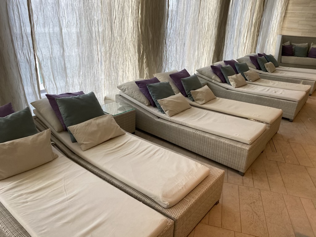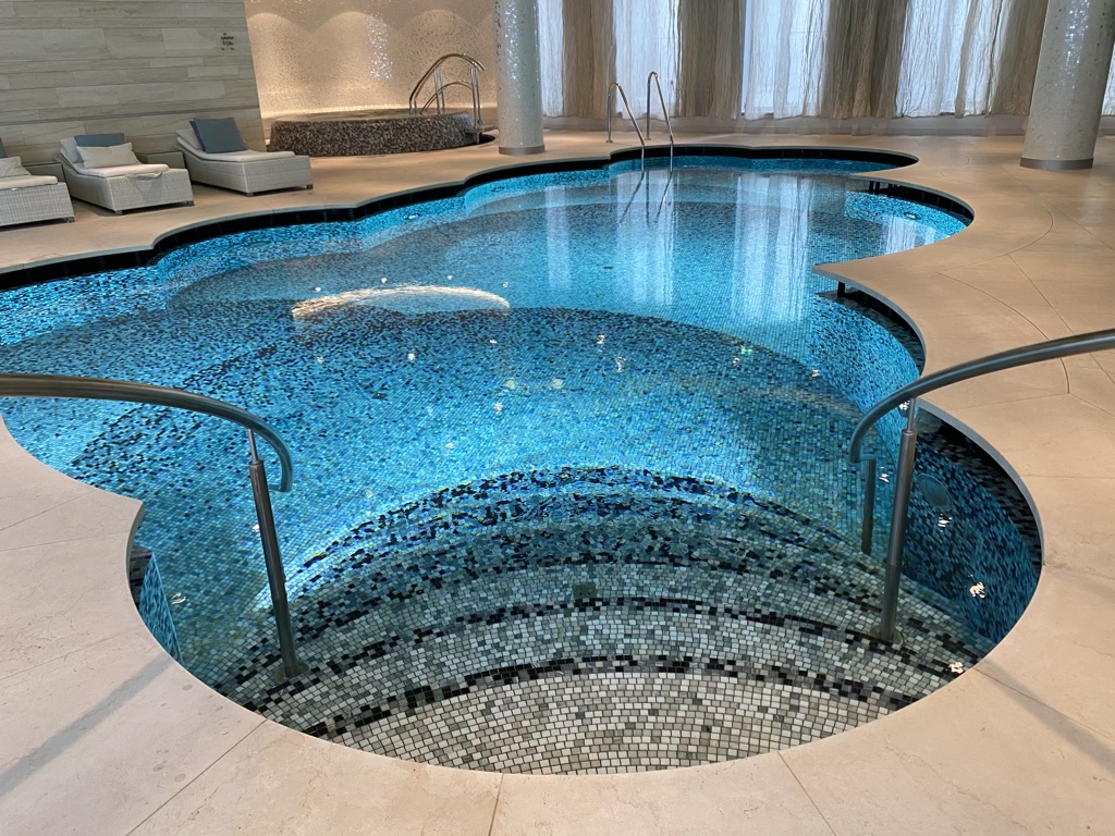 Das Waldorf Astoria Berlin verfügt über einen schönen Indoorpool, welcher im Spa Bereich zu finden ist. Der Bereich ist mit ausreichend Liegen ausgestattet und angenehm temperiert. Im hinteren Bereich gibt es zudem einen Whirlpool und eine Sauna / Dampfbad. Sehr schön fanden wir hier, dass Wasser und Obst zur Selbstbedienung bereit stand.