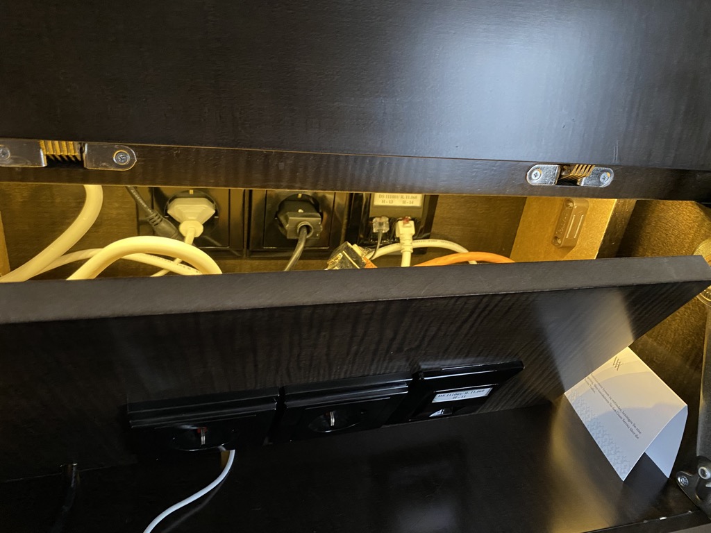 Oberhalb des Schreibtisches war ein Fernseher verbaut, welcher leider nicht funktionierte. Hierauf wurden wir bereits beim Check-In hingewiesen, mit dem Versprechen dass man daran intensiv arbeiten würde und es spätestens am Vormittag des Folgetages wieder funktionieren würde.