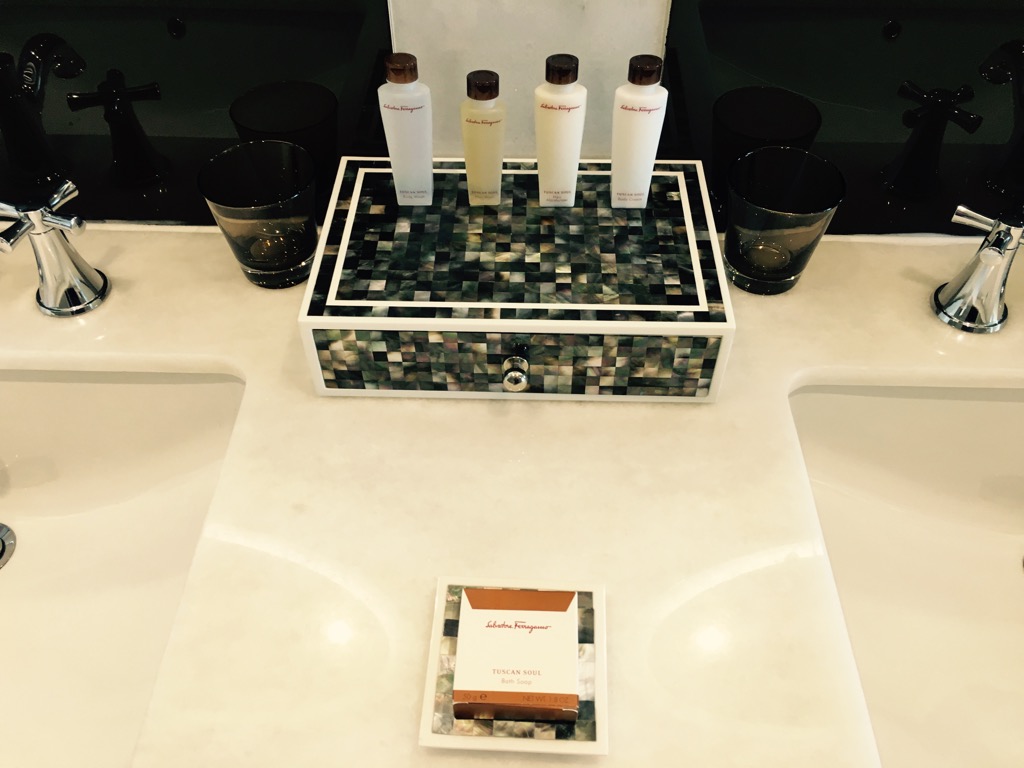 Das Bad des Zimmers hatte eine beeindruckende Größe. Es war neben der Toilette und einem Doppelwaschbecken auch mit einer Badewanne und Dusche ausgestattet. Ich persönlich habe mich total in die unglaublich weichen Bademäntel verliebt. Ich fand die Bademäntel so toll, dass ich in der Lobby gefragt habe, ob man sie käuflich erwerben könnte. 95€ waren mir dann aber doch etwas zu viel :D. Natürlich war das Bad auch mit ausreichend Amenities ausgestattet.