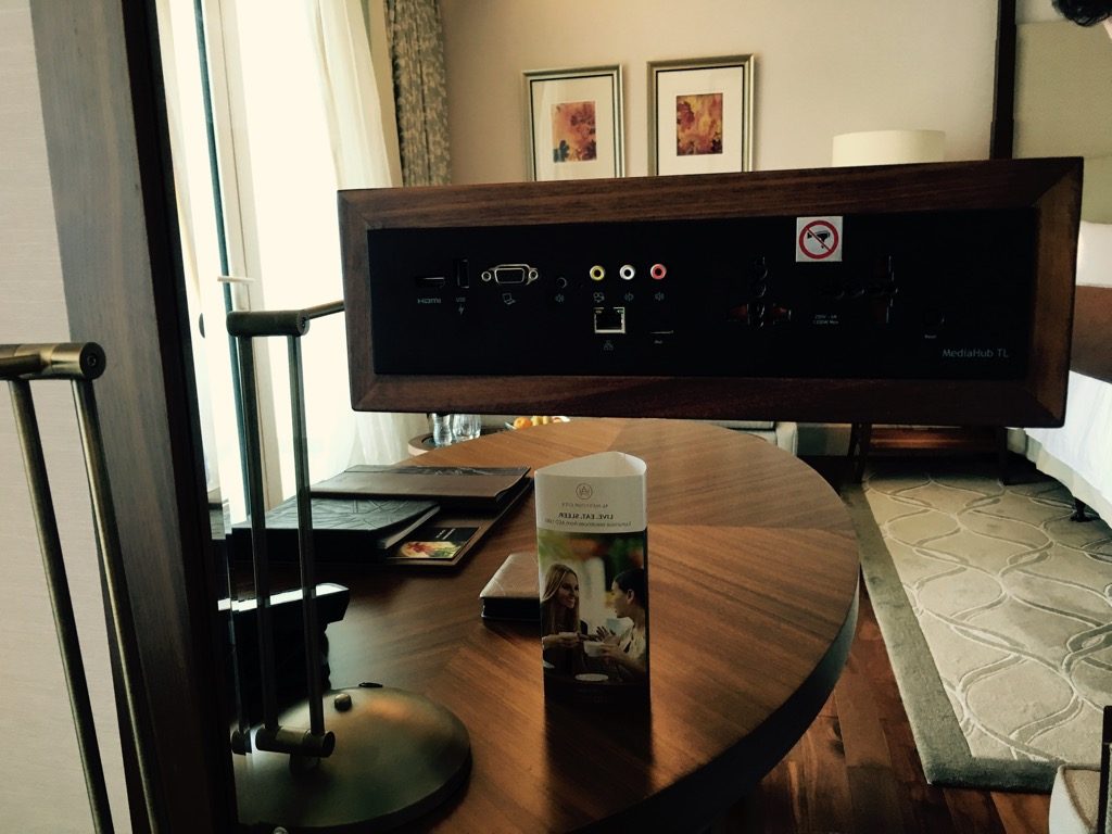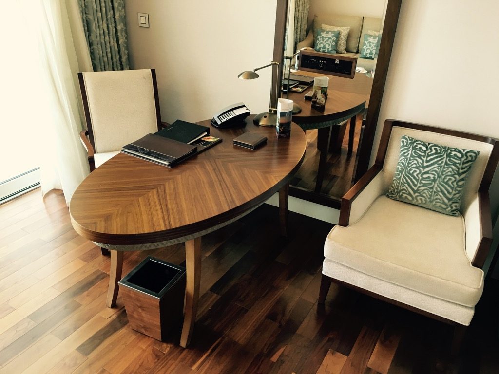 Auf der rechten Seite vor der Fensterfront befand sich noch der große Fernseher und ein Schreibtisch. Am Schreibtisch befanden sich auch noch internationale Steckdosen und USB-Anschlüsse um seine elektronischen Geräte zu laden.