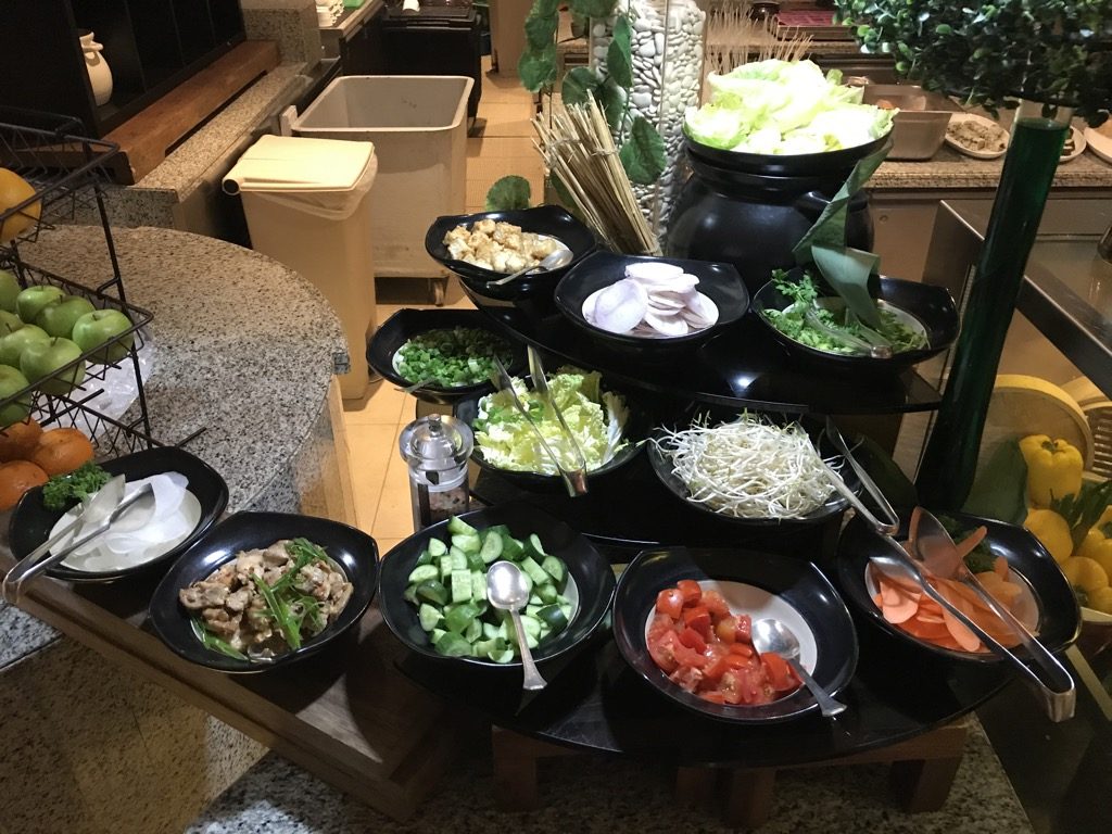 Es gab eine sehr große Auswahl. Neben verschiedenen Brot- und Brötchensorten, einer Wurst- und Käseauswahl, Müsli, diversen Milchprodukten und einigen warmen Alternativen, gab es auch noch einen Koch, der frische Eierspeisen auf Wunsch zubereitete.