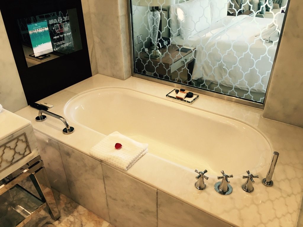 Wir haben unsere Zeit im Waldorf Astoria Palm Jumeirah sehr genossen. Das einzige Manko ist die fehlende Lounge, die wir von Hotels der Hilton Kette gewöhnt sind. Die Restaurants im Hotel waren grundsätzlich alle bezahlbar, aber definitiv im höheren Preissegment. Toll war, dass man an den Pools und am Meer so viel gekühltes Trinkwasser bekommen konnte, wie man wollte. Ebenso die „Eistaschen“ der Flaschen wurden regelmäßig mit neuem Eis bestückt.