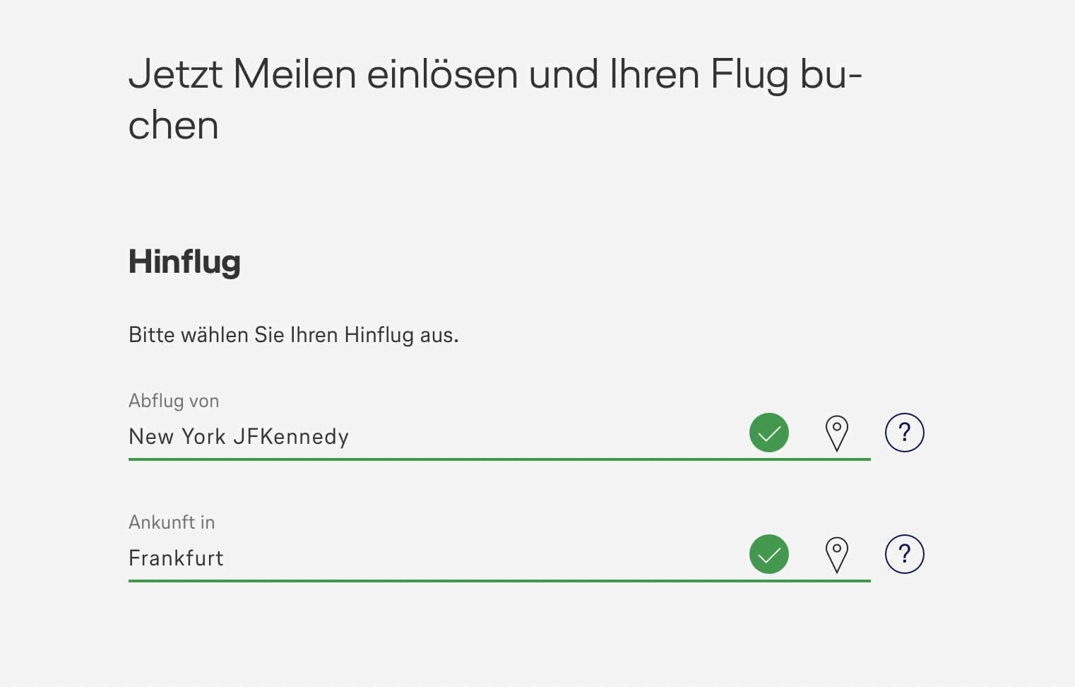 Auf der Miles&More Webseite muss man bei der Prämienflugsuche einfach nach Flügen zwischen New York (JFK) nach Frankfurt suchen.