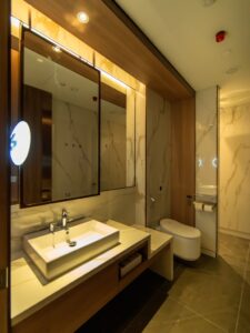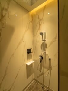 Wie es sich für eine First Class Lounge gehört, gerade an einem Langstrecken Drehkreuz wie Singapur, gibt es in der Singapore Airlines SilverKris First Class Lounge auch eigene Duschen in denen man sich frisch machen kann. Dabei teilt man die Duschen mit dem Private Room.