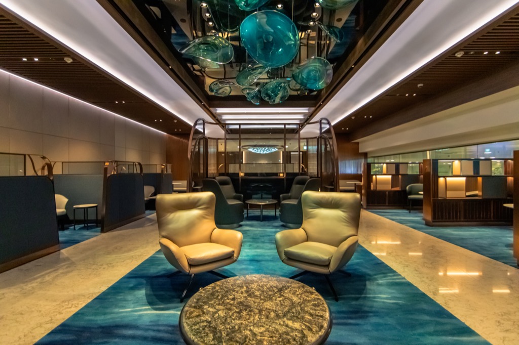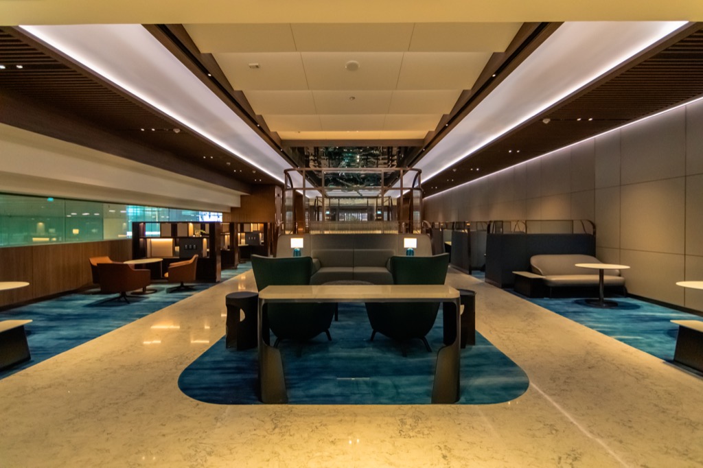 Mit 134 Sitzen ist die neue Singapore Airlines First Class Lounge durchaus auf einige Passagiere ausgelegt, dennoch hat man die Sitzgelegenheiten sehr großzügig gestaltet.