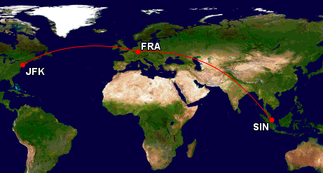 Für Frankfurt brauche man allerdings zwei komplette Airbus A380 in der neuen Ausstattung, da es die längste Airbus A380 Rotation von Singapur Airlines ist. Die Flugzeuge fliegen von Singapur nach Frankfurt und anschließend weiter nach New York, bevor sie von hier den Rückflug wieder über Frankfurt nach Singapur antreten.