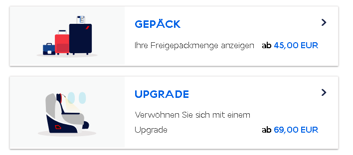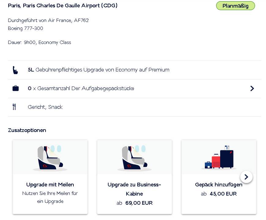 Für viele dürfte das Upgrade beim Online Check-In am relevantesten sein. Air France und KLM unterbreiten während des Check-In Prozesses im Browser oder in der App Upgradeangebote.