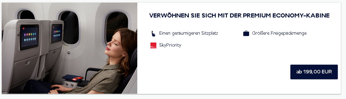 Die Kosten für die Angebote richten sich zunächst nach der Fluglänge. Je länger der Flug, desto höher der Upgradepreis.
