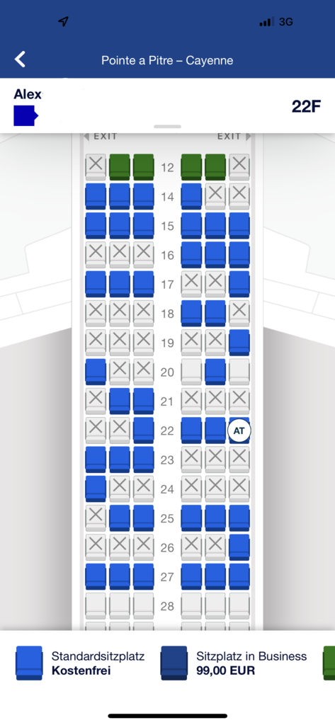 Ich habe auf dem Flug von Paris nach Pointe-à-Pitre das Angebot für ein Premium Economy Upgrade angenommen. Für den Flug von Chayenne nach Frankfurt bekam ich dann kein Angebot für die Premium Economy mehr. Bei Abflug war diese nicht voll besetzt. Da ich als Sec 1 eingecheckt habe, waren zu dem Zeitpunkt noch viele Plätze in der Premium Economy unbesetzt, aber daraus lässt sich die Buchungssituation nicht abschätzen. In jedem Fall hält sich das Gerücht, dass Air France und KLM hier gerne einmal aufhören, Kunden Upgrades anzubieten, wenn sie diese zu oft annehmen. Insbesondere aus günstigen Eco-Tarifen. Belegen lässt sich das jedoch nicht.