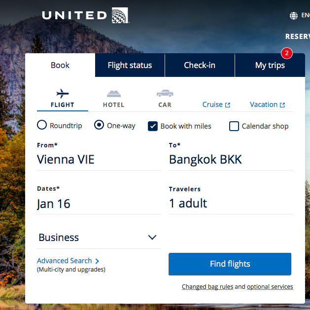 Eine der einfachsten Möglichkeiten um Prämienflüge und deren Verfügbarkeiten zu finden ist die United Airlines Webseite. Auf United.com kann man ohne Anmeldung oder Registrierung bei fast allen Airlines Prämienflüge suchen. Zusätzlich gibt es auch eine recht gute „Advanced Search“ Funktion.