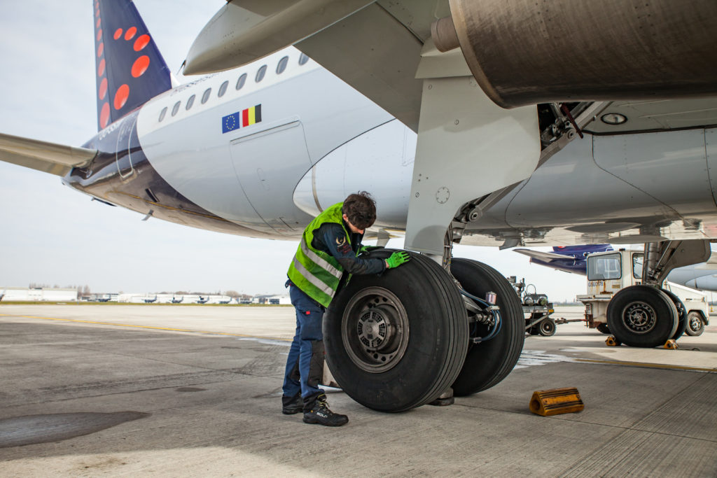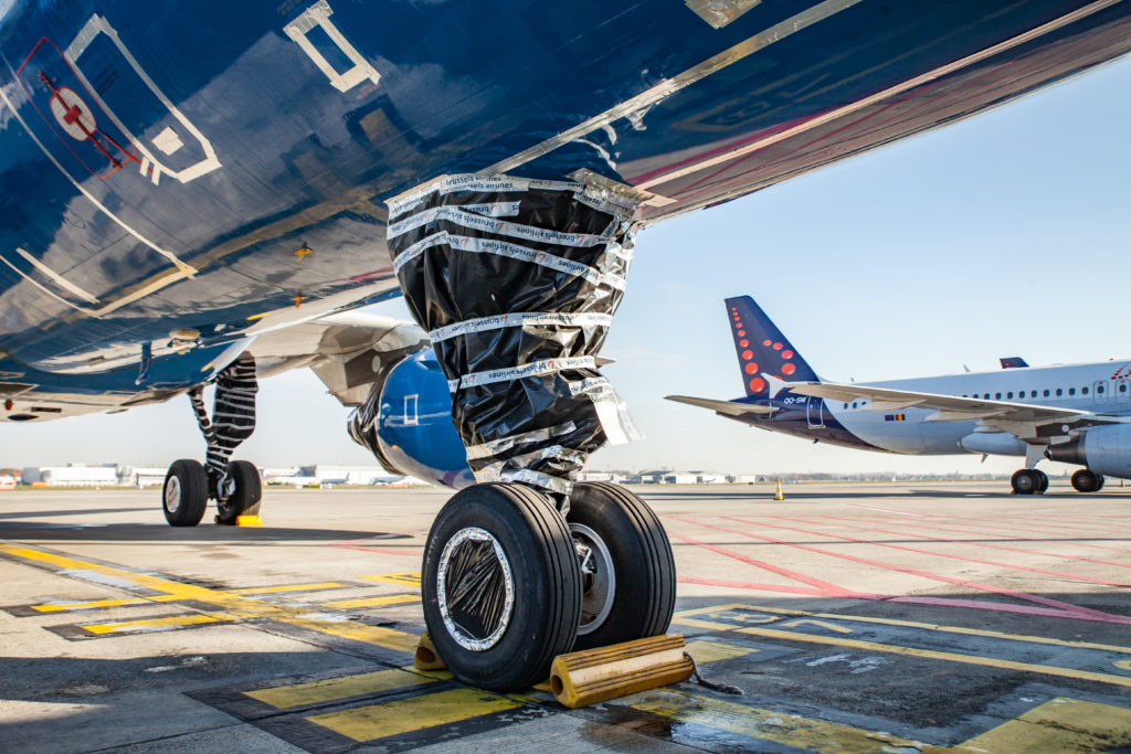 Hierfür muss man jedes Rad ein mal am Tag anheben und um ein paar Grad drehen. Für diese Arbeit beschäftigt Brussels Airlines weiterhin 30 Mechaniker in Vollzeit, was bedeutet, dass jedes Flugzeug etwa 20 Arbeitsstunden pro Woche während der Einlagerung benötigt.