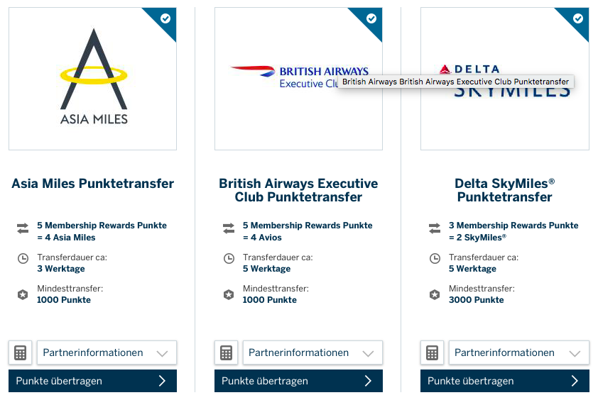 American Express Membership Rewards Punkte zu Meilenprogrammen transferieren