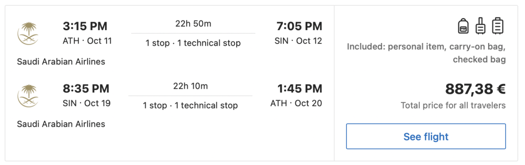 Saudia Airlines ist sicher nicht jedermanns Sache, aber bei diesen unfassbar günstigen Preise würde ich sie ernsthaft in Betracht ziehen, denn selbst mit der Anreise nach Athen ist man mit diesen Saudia Airlines Business Class Angeboten noch deutlich günstiger und vor allem viel komfortabler unterwegs, als in der Premium Economy Class.
