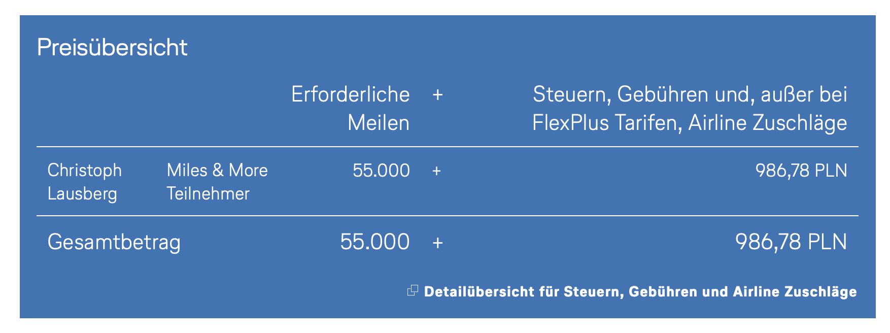 55.000 Meilen für Hin- und Rückflug, anstelle von 112.000 Meilen: