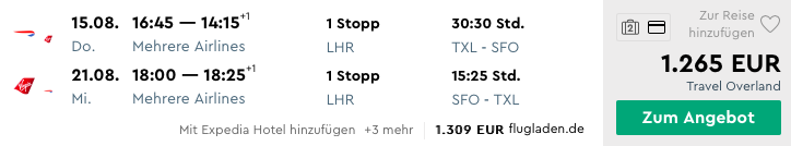 Folgenden Preise habe ich über Momondo.de ermittelt. Als Abflugsort habe ich immer Berlin gewählt, allerdings findet Ihr ähnliche Preise zum Beispiel auch ab Frankfurt, Stuttgart, Hamburg, Düsseldorf und München.