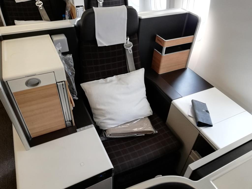 Swiss bietet Euch auf den Langstrecken immer einen Lie-Flat Sitz in der Business Class an. Die meisten Sitze haben einen direkten Zugang zum Gang, bei Alleinreisenden sind die „Thron“-Sitze beliebt. Diese bieten besonders viele Ablagemöglichkeiten und ein Plus an Privatsphäre.