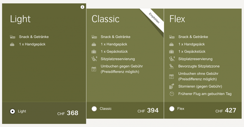 Alle Passagiere, welche in der Economy den Tarif Light buchen, also nur Handgepäck, erhalten womöglich zukünftig nur noch Wasser und das „Swiss Schoggi“ gratis gereicht. Alle anderen Economy Passagiere, die Classic oder Flex buchen, erhalten zusätzlich einen Snack, also einen Müsli- oder Schokoriegel.