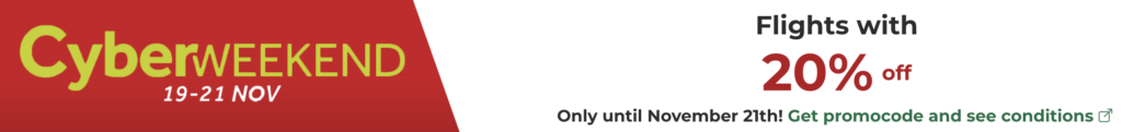 Nutzen Sie dieses Wochenende, um Ihre Traumreise zu planen, und profitieren Sie von unserem Sonderrabatt von 20%, exklusiv bis zum 21. November.In modernen und weltoffenen Städten oder inmitten von Naturschönheiten und Geschichte gibt es viel zu tun und unvergessliche Momente zu erleben. Sie sind sich noch nicht sicher, welches Reiseziel Sie wählen sollen? Sehen Sie sich unsere Vorschläge unten an, lassen Sie sich inspirieren und verpassen Sie diese Gelegenheit nicht.