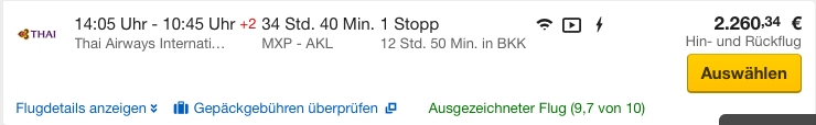 Dieses Thai Airways Business Class Angebot ist an sich schon sehr interessant. Business Class Flüge von Europa nach Australien und Neuseeland kosten häufig mehr als das Doppelte. In Verbindung mit den vielen Meilen bei Miles&More, oder einem Star Alliance Gold Status bei SAS Eurobonus wird dieses Angebot doppelt attraktiv.