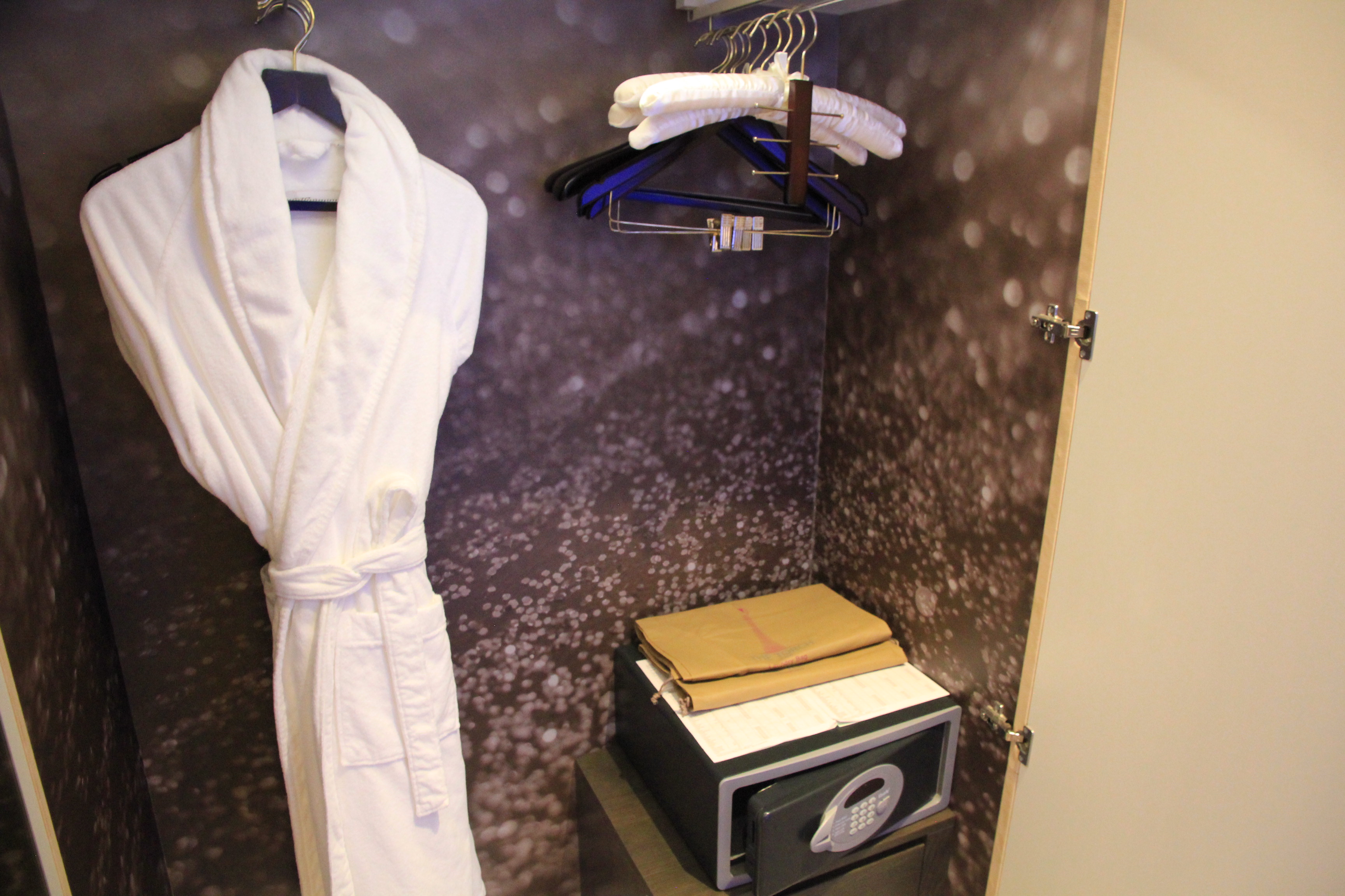 Im Kleiderschrank gegenüber vom Bad befindet sich wie üblich ein Bademantel, der Save sowie genügend Platz um seine Kleidung aufzuhängen.