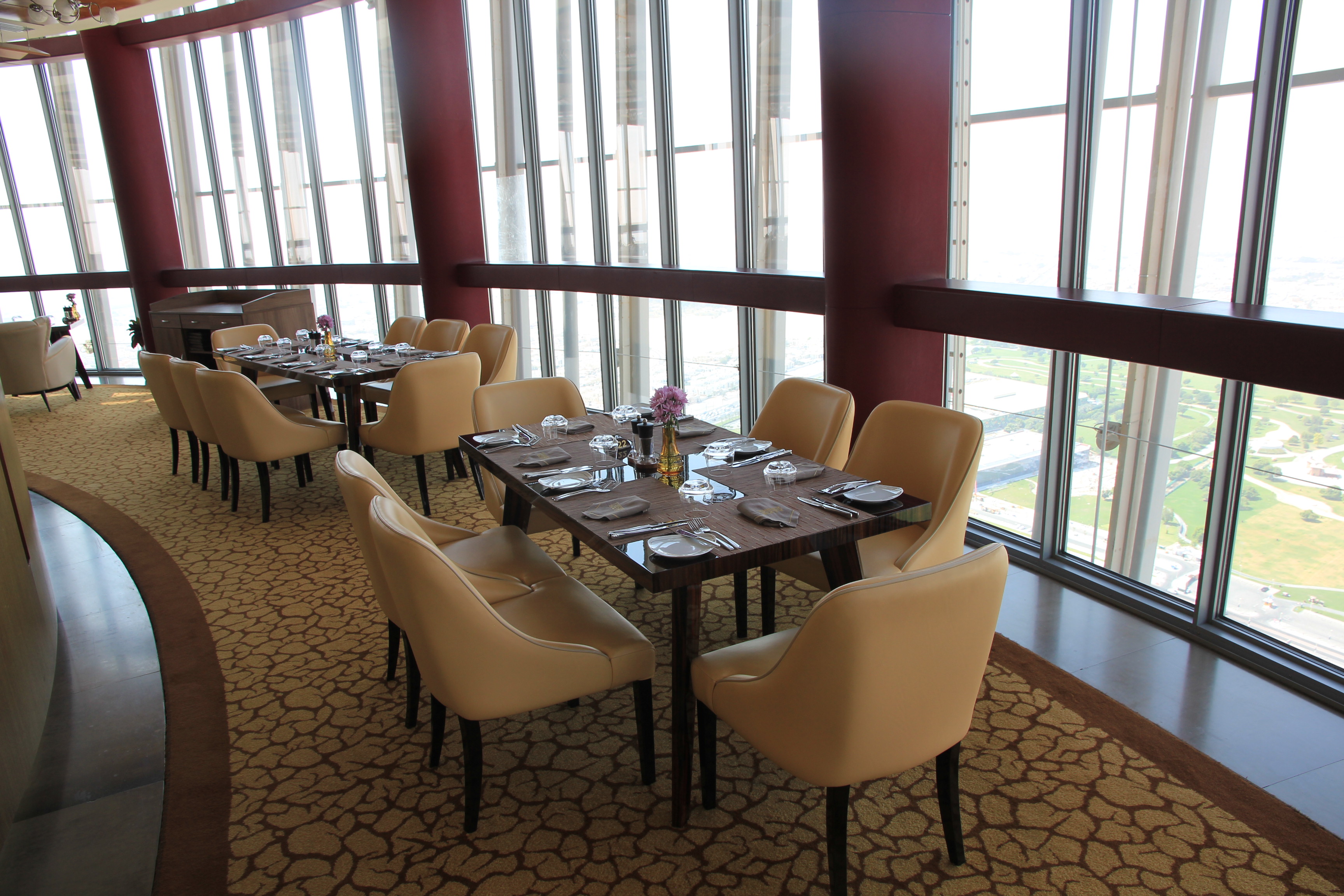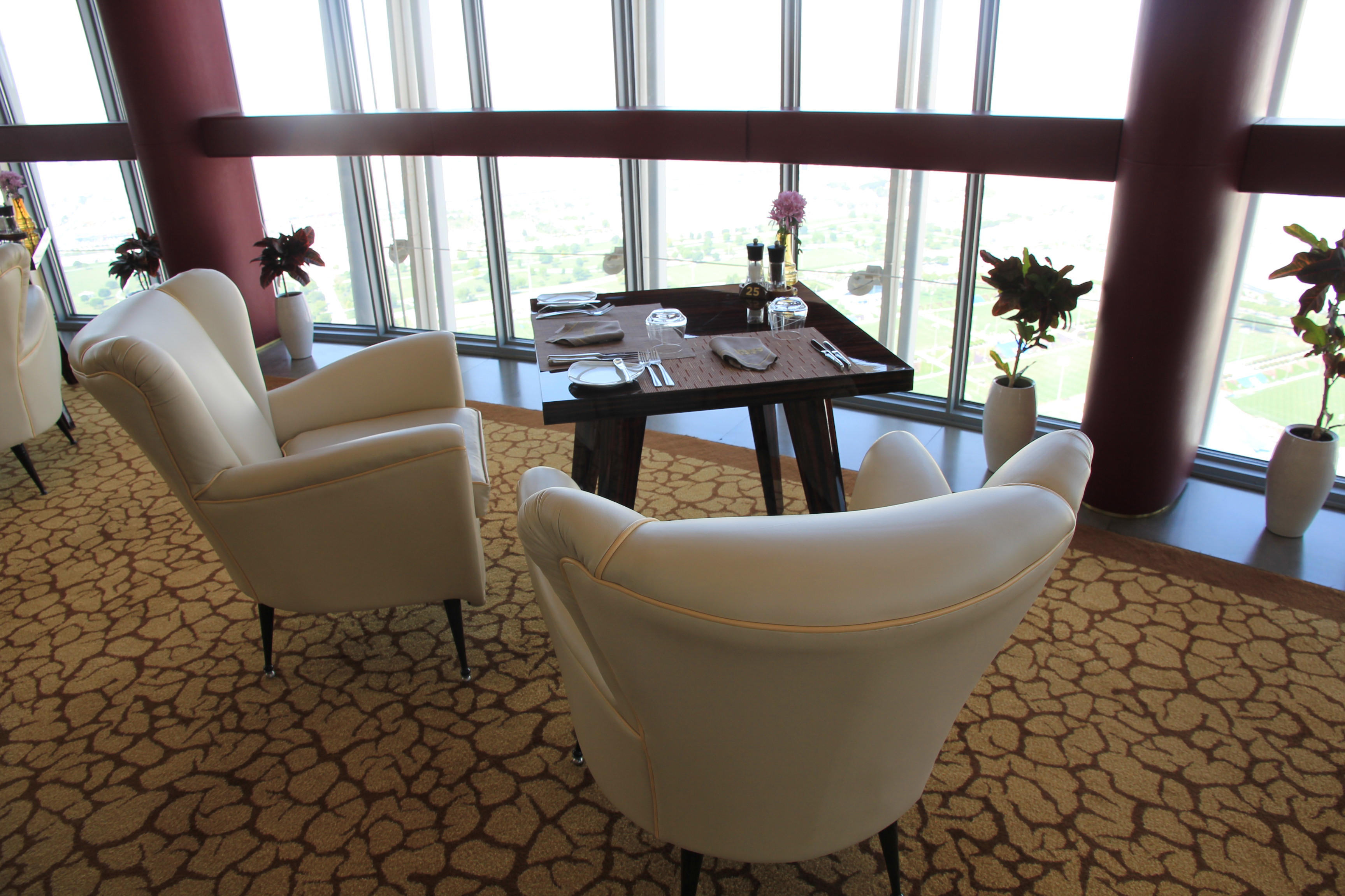 Das THREE SIXTY ist ein Restaurant im 47. Stockwert, was sich um die eigene Achse dreht. Vergleichen könnte man es mit dem Berliner Fernsehturm. Während man sein mediterranes Essen genießt, hat man so die Chance ganz Doha von oben zu sehen.