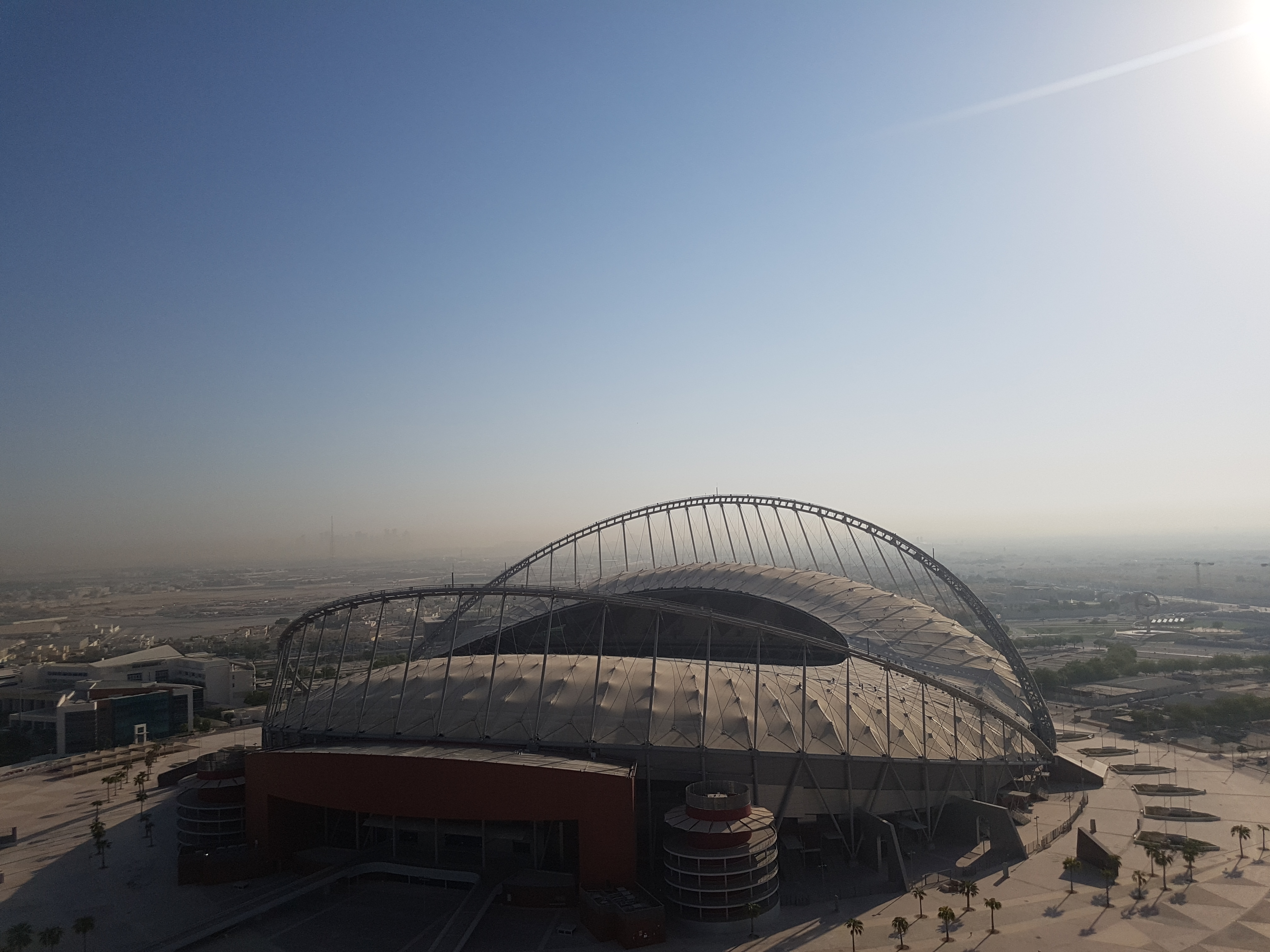 Das Hotel liegt knappe 30 Minuten vom Airport entfernt. Wer ein Uber (wie in meinem Fall) bucht, zahlt circa 44 QAR oder umgerechnet 10 Euro. Das Hotel liegt direkt am Aspire Park. Hier gibt es neben der Villagio Mall auch diverse Stadien, die während des Asien Cups genutzt wurden. Bei der nächsten Fußballweltmeisterschaft, wird das The Torch Doha sicherlich die beste Lage haben. Es liegt direkt neben dem Khalifa International Stadion, in welchem mehrere Spiele und das Finale ausgetragen werden.